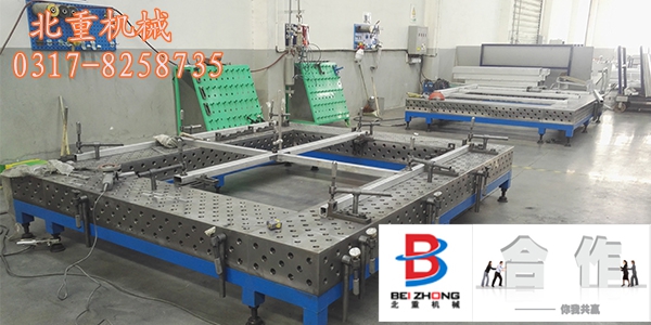 柔性焊接工裝平臺(tái)的承載能力高,鋼性穩(wěn)定,它的五個(gè)面均加工有規(guī)則的孔,并刻有網(wǎng)線。焊接平臺(tái)可方便地延伸和擴(kuò)展,組合。經(jīng)擴(kuò)展的標(biāo)準(zhǔn)臺(tái)面可模塊化的定位和夾緊直接連接在一起。在安裝、調(diào)整和定位工件過(guò)程將柔性工裝平臺(tái)的通用功能展示的淋漓盡致,尤其在了大型工件方面的應(yīng)用上。