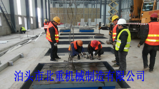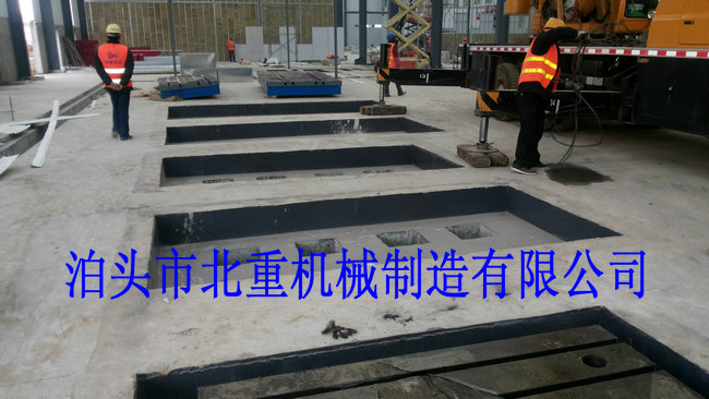 我公司為西門子電機(jī)制造的6件2500*4000電機(jī)試驗平臺安裝中.電機(jī)試驗平臺表面帶有T型槽,方便固定實驗設(shè)備.T型槽工作臺采用預(yù)埋的安裝形式,這樣的優(yōu)點是:1.不會出現(xiàn)平臺在實驗震動下的位移.2.減小震動輻射范圍.3.使試驗平臺的壽命和實驗效果大大提高.
